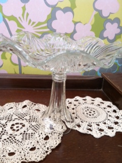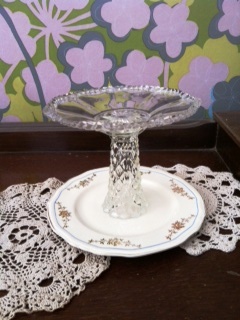 These stands are crafted from individual pieces of vintage glass and china and are chosen with care to allow each piece to complement each other and work together to create truly stunning and original items. Each stand shown is for sale and will have diameter sizes along with the price.