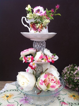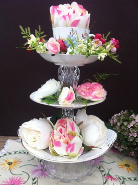 In addition to table centrepieces, we also hire out vintage china, perfect for a summer wedding or garden party! Cake stands are also available to hire. Take a look at similar stands which are listed for sale on the website.