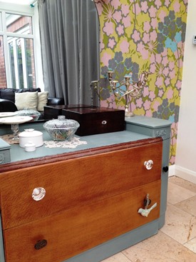 It would also work really well as a TV cabinet, with the TV fitting perfectly in the centre of the dressing table! A very unique look in your living room